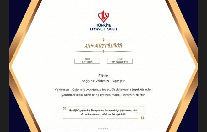 Afşin Müftülüğü, destek veren tüm kurum, okul ve vatandaşlara teşekkür ederek, mazlum coğrafyalara yönelik yardım faaliyetlerinin kararlılıkla sürdürüleceğini bildirdi.