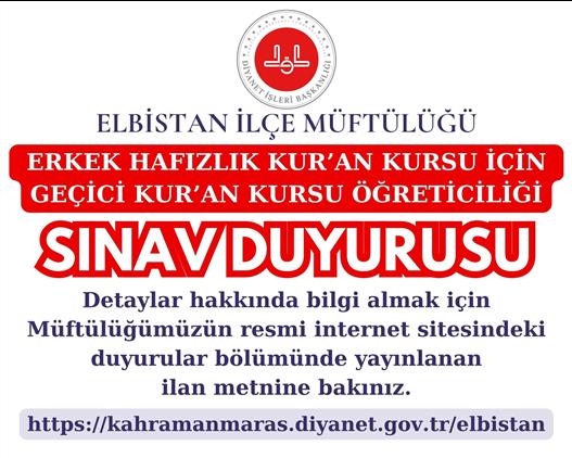 Erkek Hafızlık Kur'an Kursu Geçici Öğretici Sınav Duyurusu