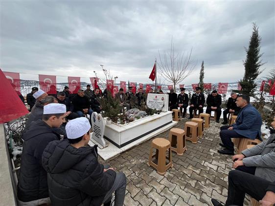 Şanlıurfa'nın Akçakale ilçesinde 08.01.2022 tarihinde 3'üncü Hudut Alay Komutanlığı'na bağlı Gültepe Hudut Karakolu sorumluluk bölgesinde bölücü terör örgütü mensuplarınca menfeze yerleştirilen el yapımı patlayıcının patlaması sonucu şehit olan Piyade Teğmen Murat ALYAKUT, kabri başında okunan Kur'an-ı Kerim tilavetinin ardından Şube Müdürü İsmail MEDAR tarafından dua yapıldı.